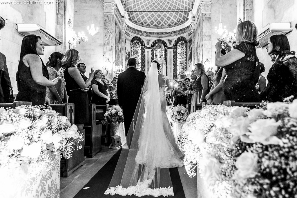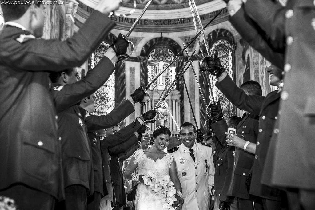 Um dos momentos marcantes sem dúvida foram a entrada da noiva e o teto de aço na saída dos dois da igreja.